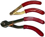 These cutters were specifically designed for cutting stranded cable cleanly, leaving no frayed ends. The tool will cut safety/lock wire as well as piano wire. They are manufactured from aircraft quality ALLOY STEEL. To insure long life of the cutting edge the tools go through a complex heattreating process, giving them a file hard surface with a tough core. The tools are zinc plated with a gold iridite finish for rust protection. The tools feature a unique handle design for added leverage with thick "T" shaped vinyl grips for cutting ease |